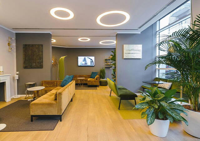 Diese Philosophie leben wir gemeinsam mit unseren Partnern bei der Gestaltung von Begegnungsräumen. Unser Angebot umfasst durchdachte Einrichtungslösungen für Empfangsbereiche, Sitzungszimmer, Cafeterias und Lounges.